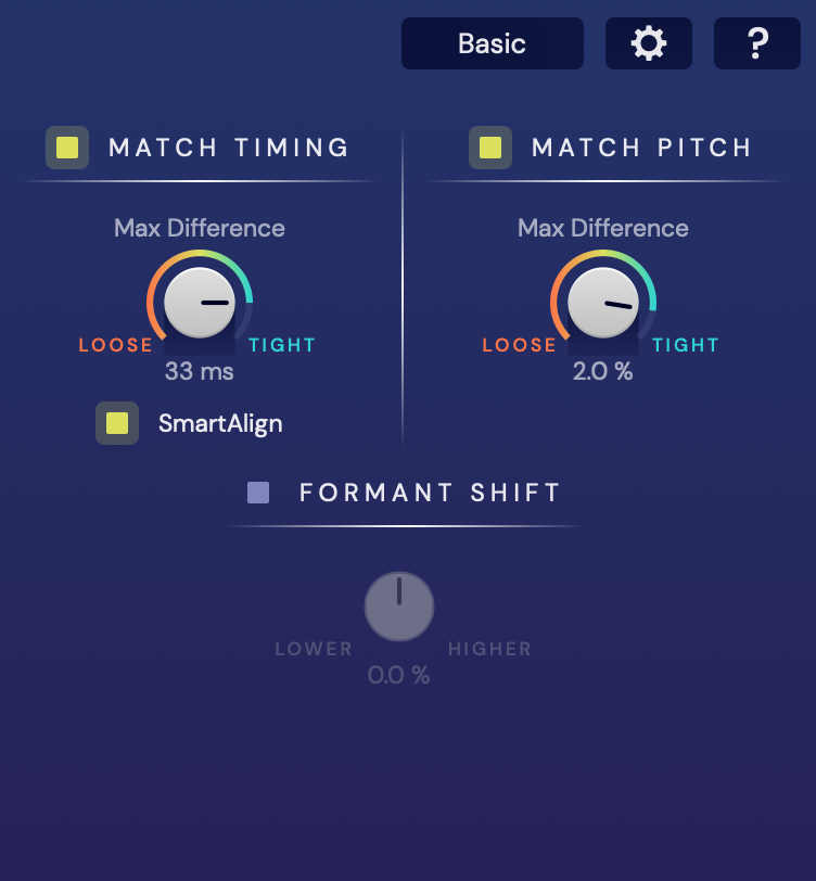 Basic mode offers just three controls: Max Difference [Match Timing], Tuning Match [Match Pitch] and Formant Shift.