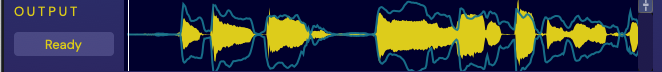 The Output appears in the bottom of the three default waveform views, as a solid yellow waveform overlaid with a blue outline of the Guide waveform to show time alignment of the Output relative to the Guide.