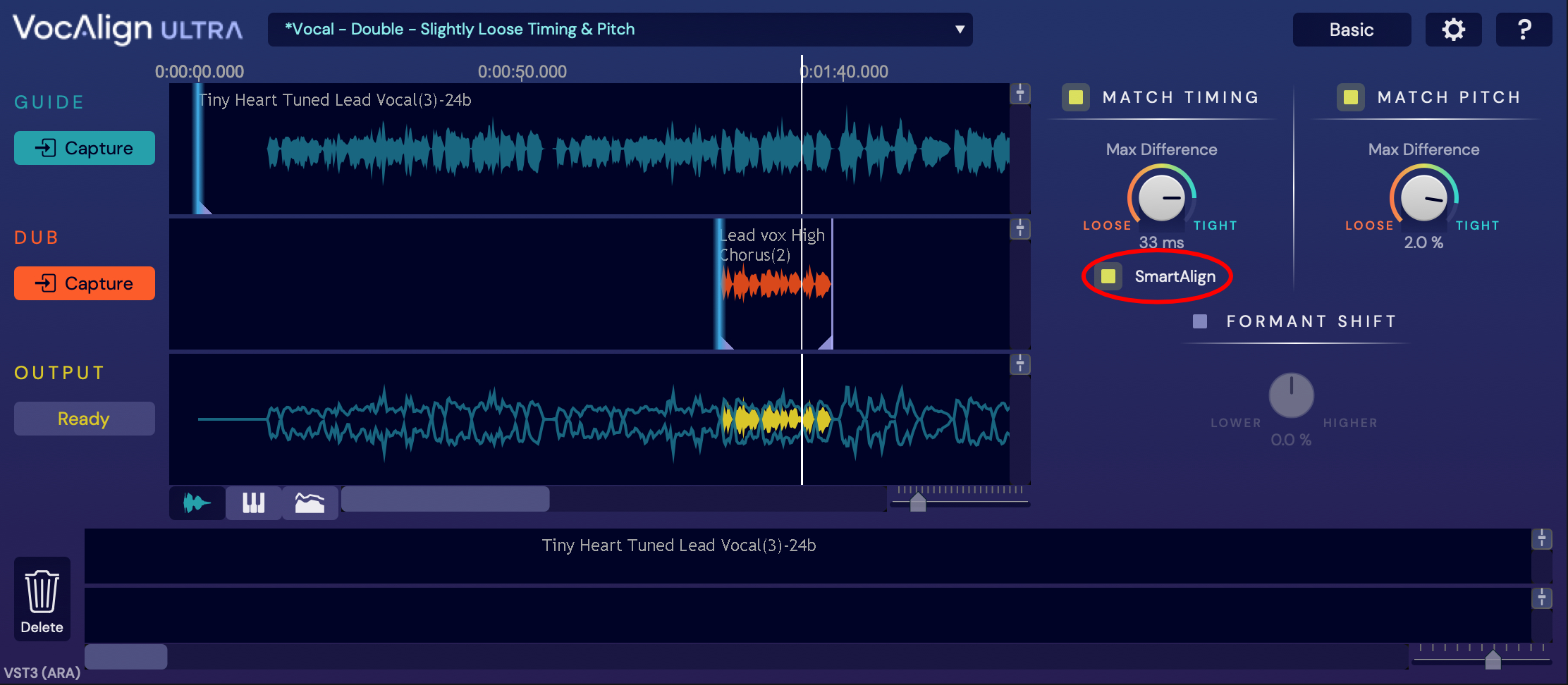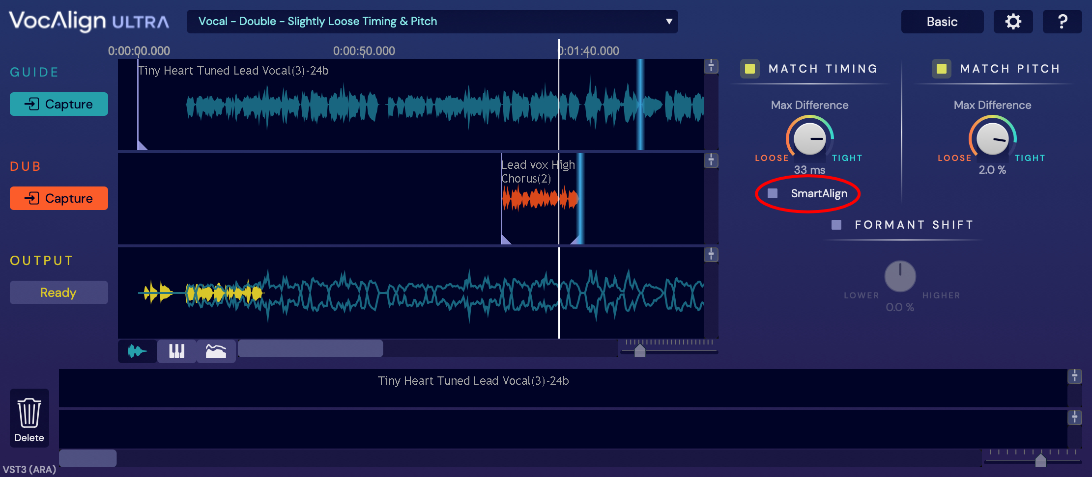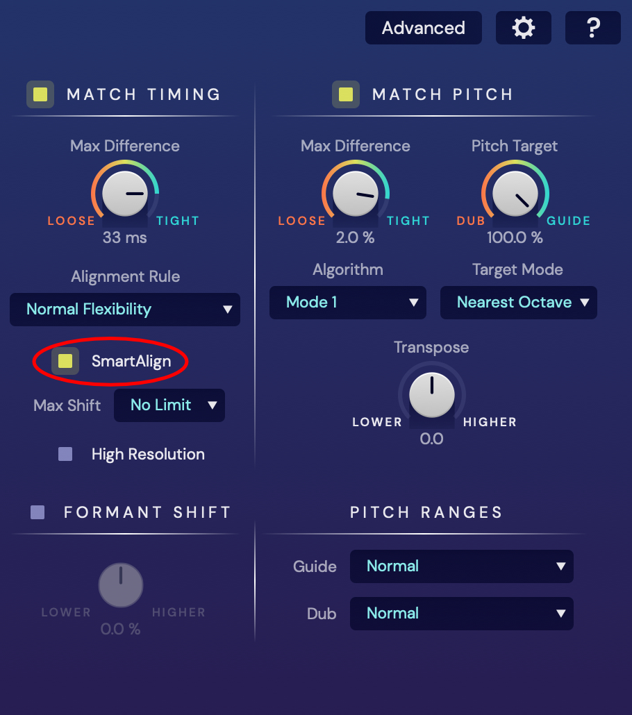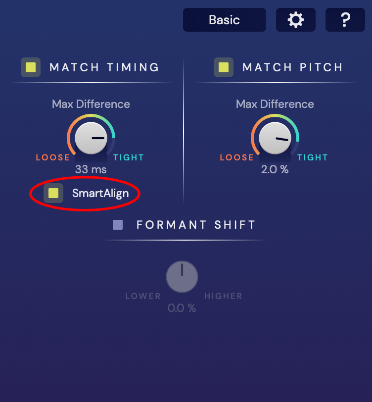 VocAlign Ultra 1.1 adds SmartAlign as an option in the Match Timing section of both the Basic and Advanced modes as shown in the pictures below.