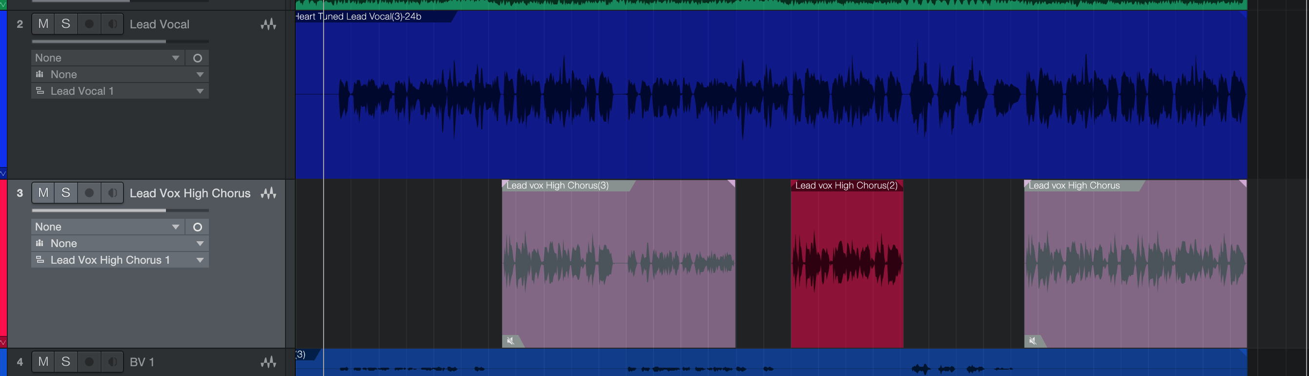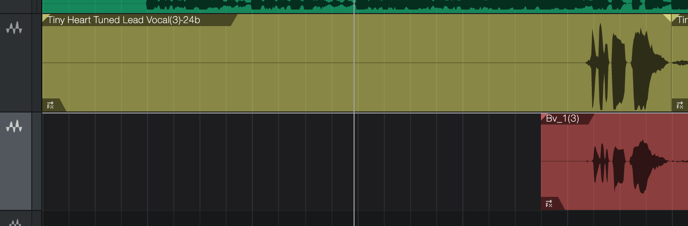 In the screenshot below, we can see two audio tracks labelled Lead Vocal and Lead Vox High Chorus.