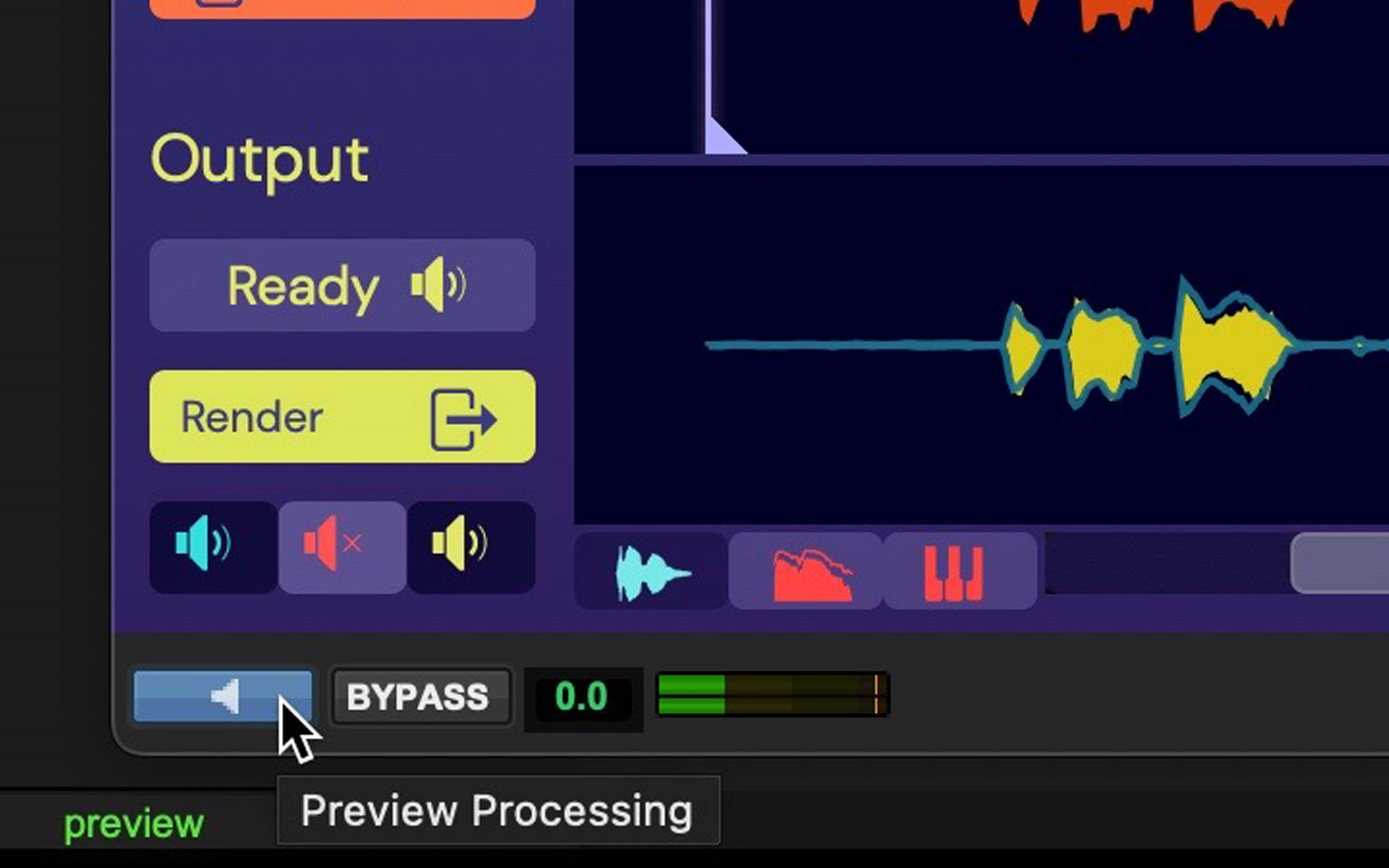1. Alternatively, click the Audio Suite Preview button (the tiny speaker at the bottom left) to audition the Guide and aligned Output together. Use the three colour- coded Solo buttons above to hear any combination of the input and output signals.