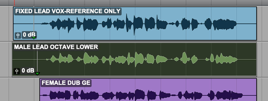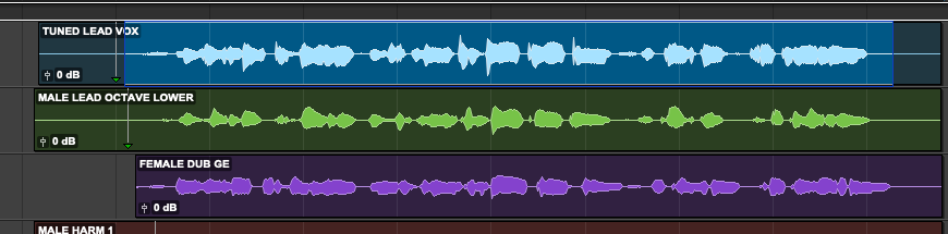 There are two Harmony tracks in this session: Male Harmony and Female Harmony.