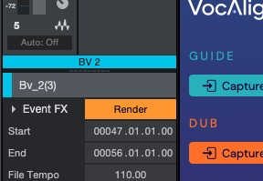 9. Now let’s align a harmony vocal. Select the BV2 audio event, and capture it as a new Dub. Since the ARA version can work with multiple Dubs, we do not need to change the guide.