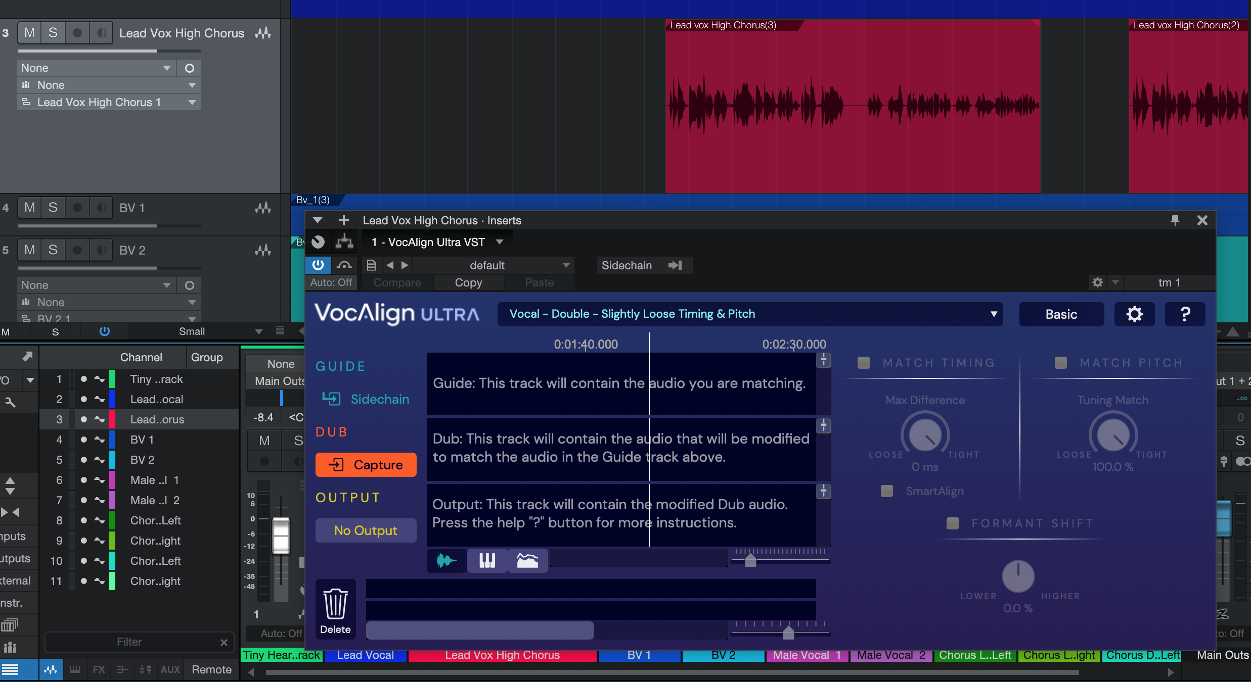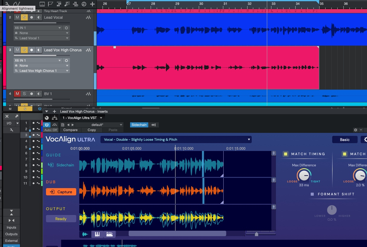 Start playback in your DAW to hear the Lead Vox High Chorus track play the aligned Output signal from VocAlign Ultra.