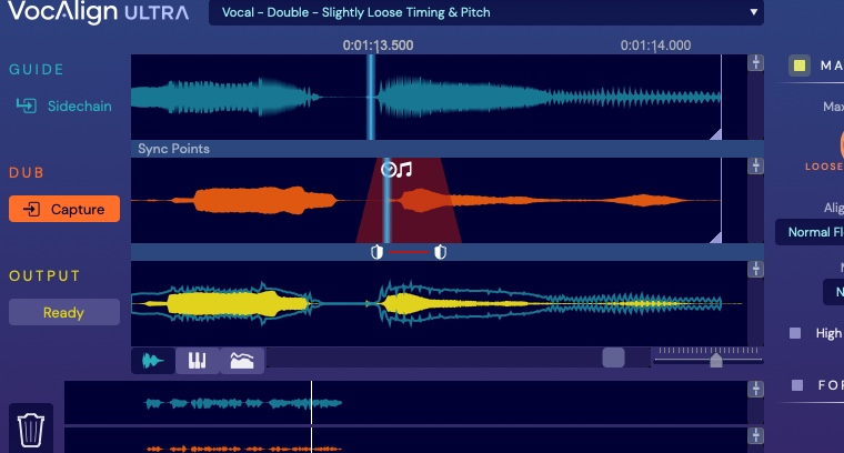 11. You can add multiple Captures to any instance of VocAlign Ultra by simply repeating the Capture process at a different point on the timeline, using the same or a different Sidechain input as the Guide. You'll then be able to apply different Presets and settings to each Capture, if required, by clicking a Capture to select it, then making your changes.