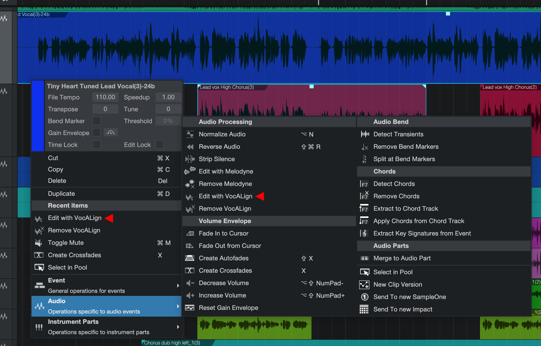 Then select both Audio Events and add VocAlign Ultra as an Event FX on each, as described in Step 2 above.